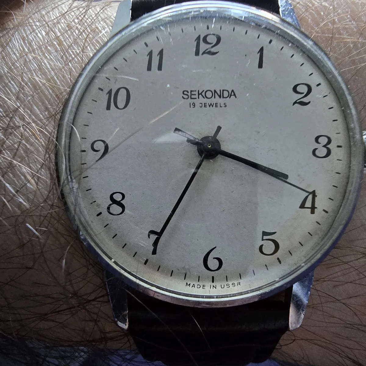 One of the more interesting (to me at least) items is a Sekonda branded watch. Today, the brand Sekonda (the Russian for second is секунда pronounced Sekoonda) is a British brand that is still around. You can often see their watches in airport duty free and other lower end department type stores. They are now manufactured in China and use common off the shelf quartz movements.